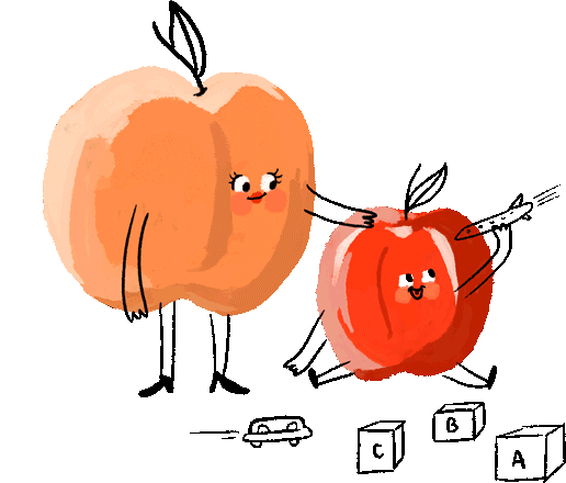 Яблуко забезпечує антиоксидантний захист організму, містить вітаміни A, С, Е, натрій, залізо, марганець, кальцій. Персик місить бета-каротин (вітамін К) захист від вільних радикалів.